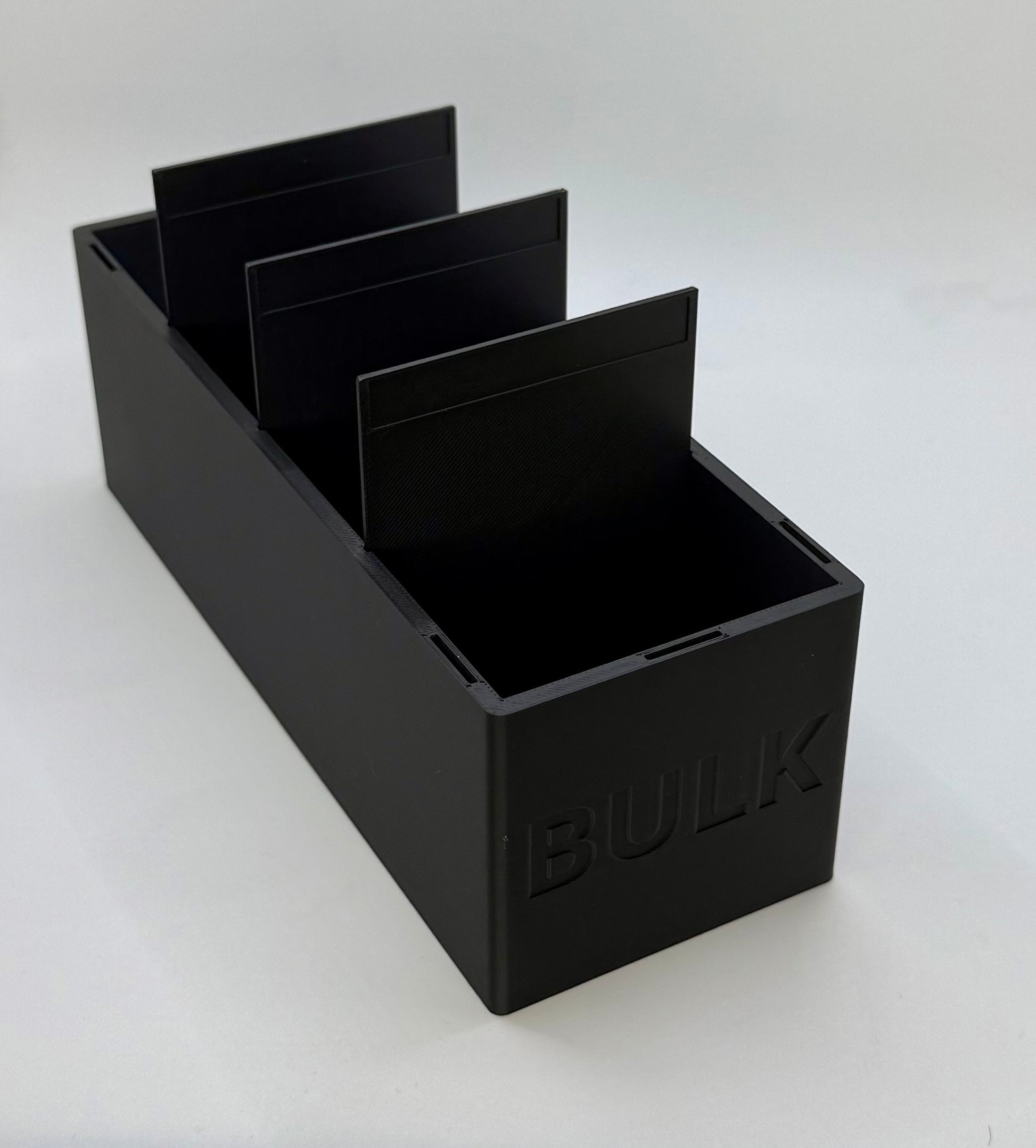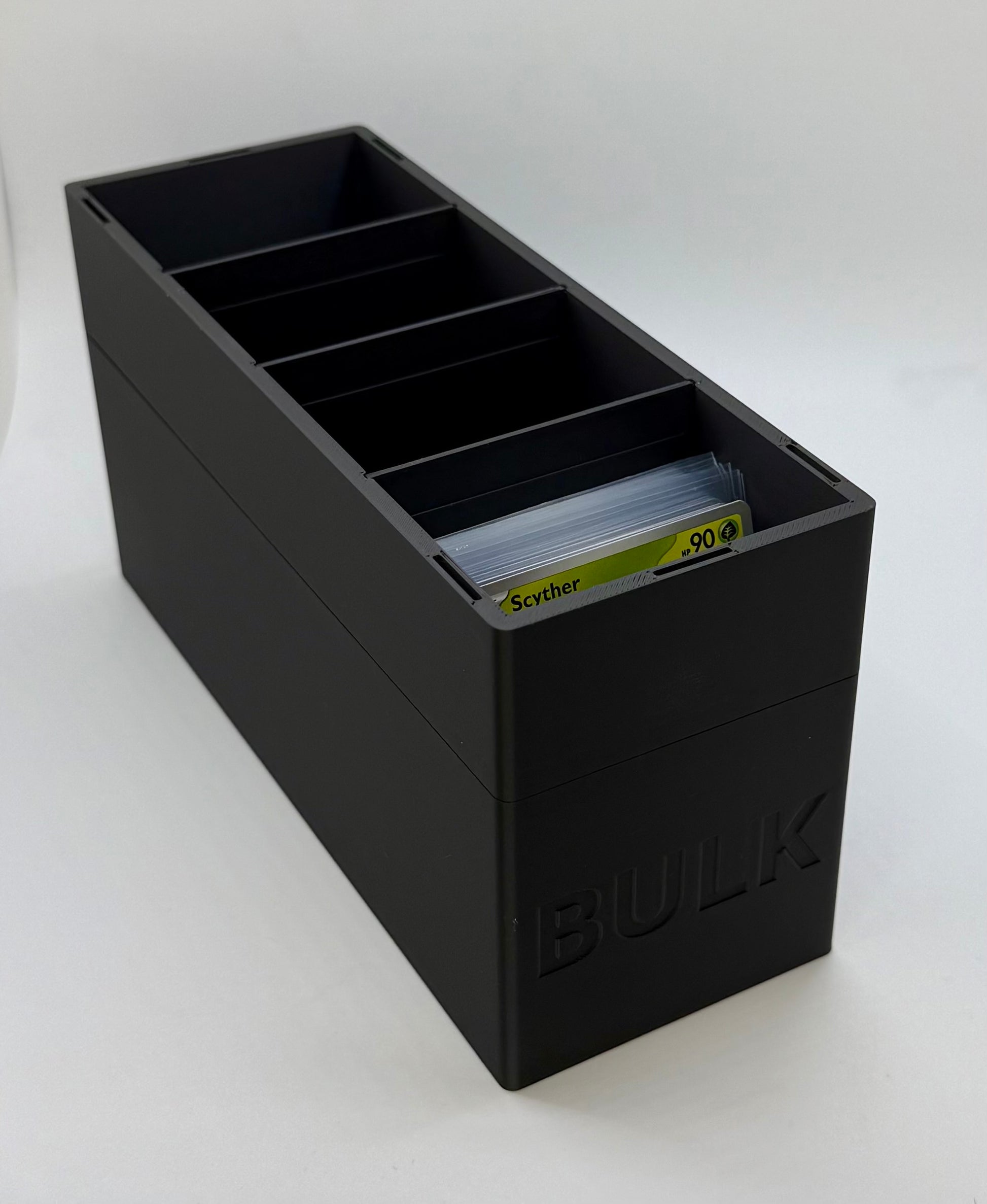 Den här staplingsbara TCG-lådan är byggd för “bulk på riktigt”: robust med smarta anslag som gör att flera lådor sitter säkert ovanpå varandra. Den släta insidan och de rundade hörnen skyddar kort och sleeves, med plats för ca 560st kort, och den öppna fronten ger snabb åtkomst när du sorterar.