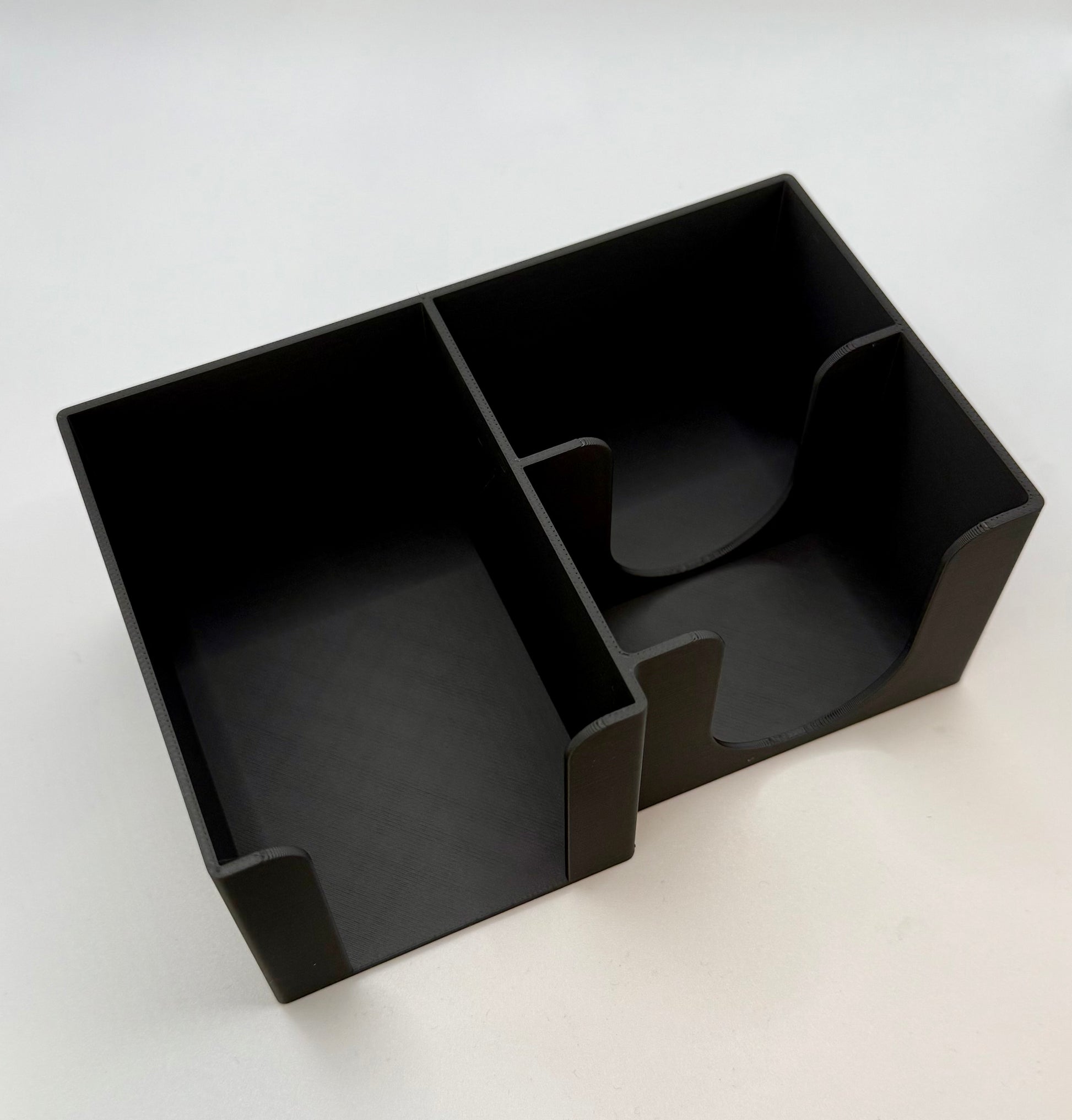 Håll ordning på din TCG-utrustning och kom igång snabbare. Den här smarta boxen har två separata fack: